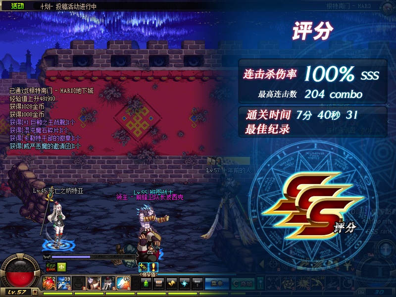 就这样费劲的打了5-6次,最后神奇的发现,泰拉石够了…靠,复仇者是后妈设计的职业呀,凭毛线剑魂就刷的过,而且仅仅比我高2级。